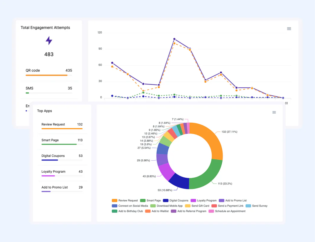 Business owners gain access to a comprehensive dashboard that provides real-time analytics on how Smart Stands and Stickers are performing across one or multiple locations.